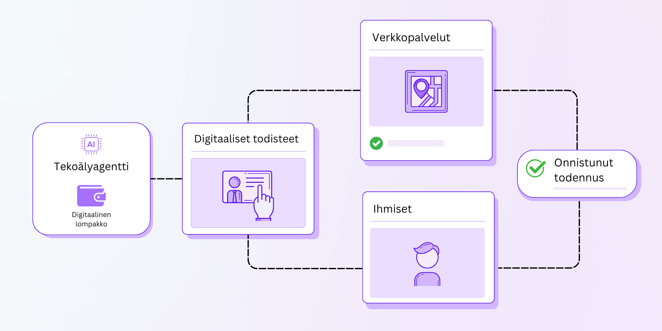 Itsehallittava identiteetti (Self-Sovereign Identity, SSI) muuttaa tapaa, jolla tekoälyjärjestelmät todistavat henkilöllisyytensä ja mitä niiden sallitaan tehdä. Sen sijaan, että luotettaisiin läpinäkymättömiin ohjelmointirajapintoihin tai keskitettyihin valtuutuksiin, tekoälyagenteille voidaan myöntää todennettavissa olevat todisteet. Ne toimivat digitaalisina todisteina henkilöllisyydestä, valtuutuksesta ja vaatimustenmukaisuudesta, aivan kuten ihmiskäyttäjien tai organisaatioiden tapauksessa.